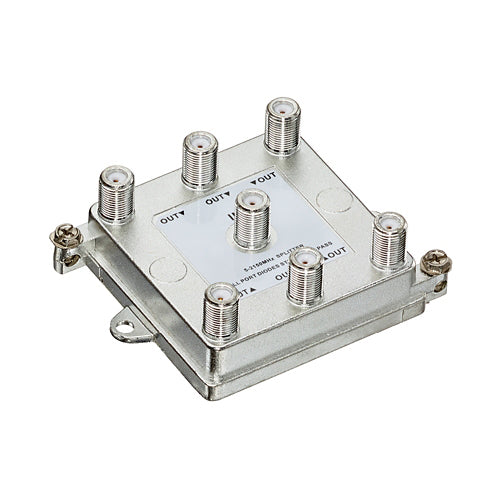- Built-in capacitors on all ports block DC or low-frequency AC and also prevent current from flowing through splitter’s ferrite core windings that cause hum modulation