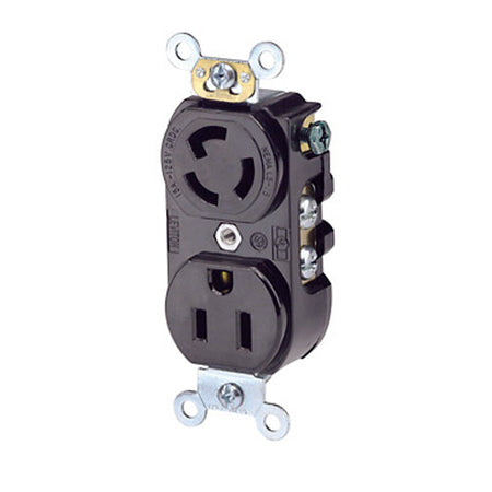 Leviton 4792, Combination Straight & Locking Blade Duplex Receptacle, Heavy-Duty Industrial Specification Grade, Smooth Face, 15A 125V, NEMA 5-15R/L5-15R, 2-Pole, 3-Wire, Back and Side Wire, Black