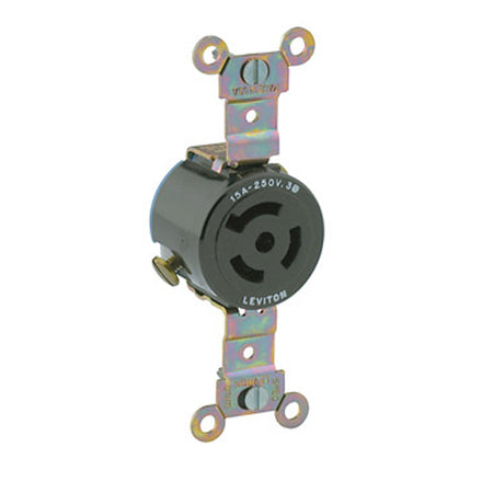 Leviton 4870, Single Locking Receptacle, Industrial Grade, 15A 250V, 3-Phase, NEMA L11-15R, 3-Pole, 3-Wire, Non-Grounding, Black