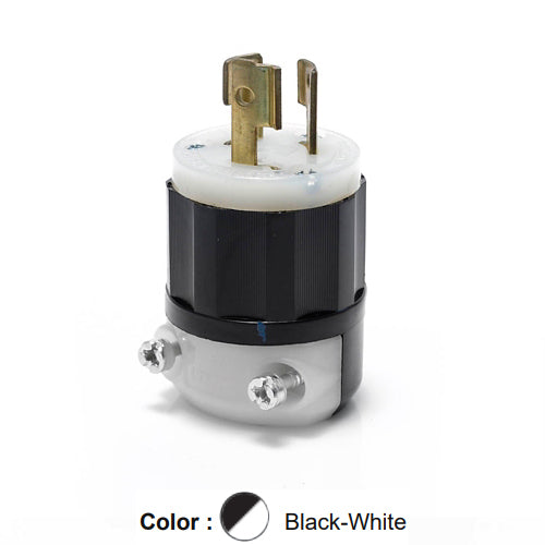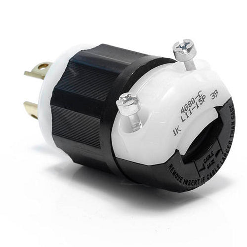 Leviton 4880-C, Locking Plug, Industrial Grade, 3-Phase, 15A 250V, NEMA L11-15P, 3-Pole, 3-Wire, Non-Grounding, Black/White