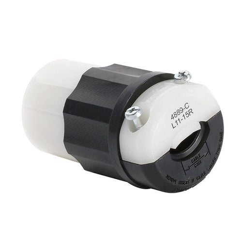 Leviton 4889-C, Locking Connector, Industrial Grade, 3-Phase, 15A 250V, NEMA L11-15R, 3-Pole, 3-Wire, Non-Grounding, Black/White