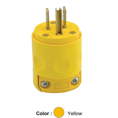 Leviton 515PV, Straight Blade Plug, Residential Grade, 15A 125V, NEMA 5-15P, 2-Pole, 3-Wire, Grounding, Yellow, 2 Packs