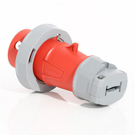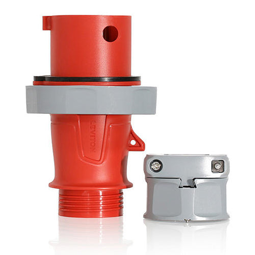 Leviton 520P7WLEV, LEV Series North American-Rated IEC 60309-1 & 60309-2 Pin & Sleeve Plug, Industrial Grade, 3-Phase, 20A 277/480V, 4-Pole, 5-Wire, IP66/IP67/IP68/IP69K, Watertight, Red
