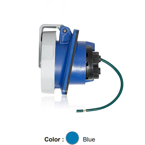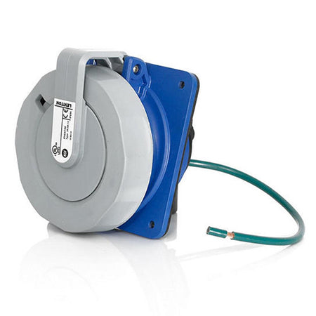 Leviton 520R9WLEV, LEV Series North American-Rated IEC 60309-1 & 60309-2 Pin & Sleeve Receptacle, Industrial Grade, 3-Phase, 16/20A, 120/208V, 4-Pole, 5-Wire, IP66/IP67/IP68/IP69K, Watertight, Blue