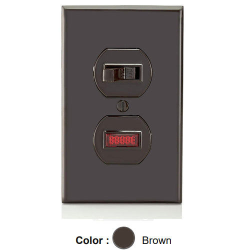 Leviton 5226, Duplex Style Single-Pole/Neon Pilot AC Combination Switch, Commercial Grade, 15 Amp, 120 Volt, Non-Grounding, Side Wired, Brown