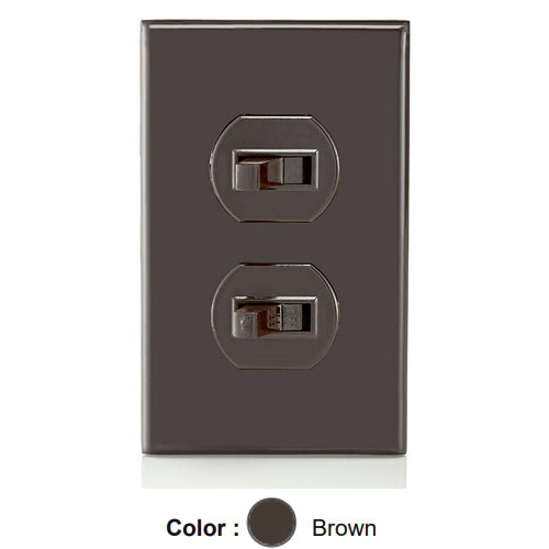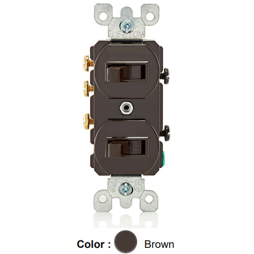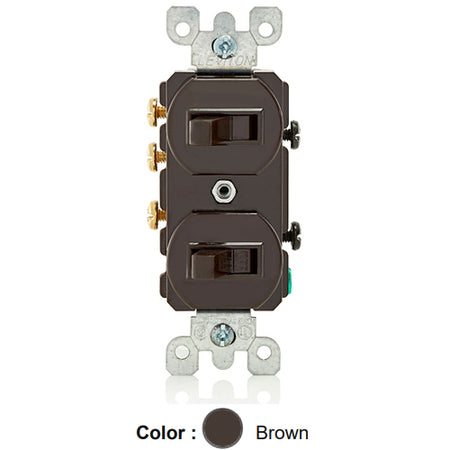 Leviton 5241, Duplex Style Single-Pole/3-Way AC Combination Switch, Commercial Specification Grade, 15 Amp, 120/277 Volt, Non-Grounding, Side Wired, Brown