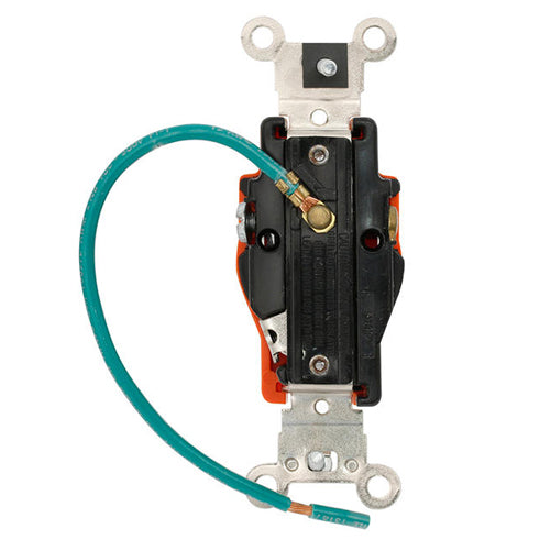 Leviton 5261-IG, Standard Straight Blade Single Receptacle, Heavy-Duty Industrial Specification Grade, Smooth Face, Isolated Ground , 15A 125V, NEMA 5-15R, 2-Pole, 3-Wire, Back and Side Wire, Orange