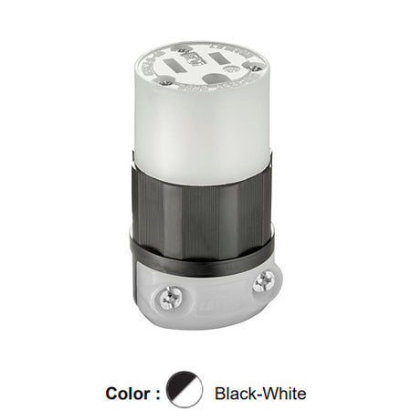 Leviton 5269-C, Straight Blade Connector, Industrial Grade, 15A 125V, NEMA 5-15R, 2-Pole, 3-Wire, Grounding, Black/White