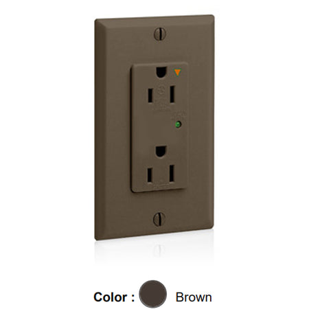 Leviton 5280-IG, Decora Plus Surge Protective Duplex Receptacle, Commercial Specification Grade, Indicator Light, Isolated Ground, 15A 125V, NEMA 5-15R, 2-Pole, 3-Wire, Back and Side Wire, Brown