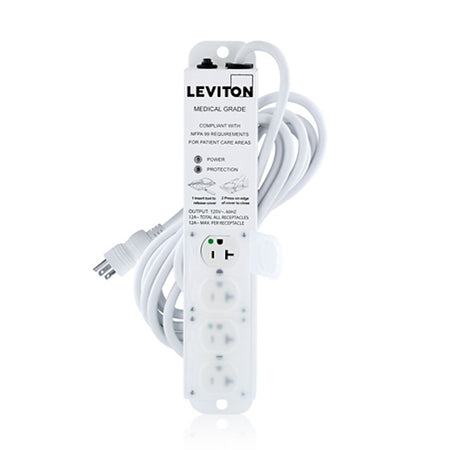 Leviton 5304M-2S5, Medical Grade Surge Protective Power Strip with 4 NEMA 5-20R Outlets with Locking Covers, 15-FT Power Cord, 20 Amp (16 Amp Max Continuous Load) 125VAC, Special Purpose Relocatable Power Tap (SPRPT)