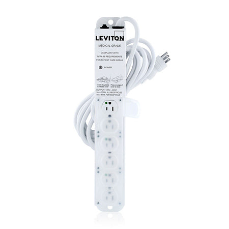 Leviton 5306M-1N5, Medical Grade Power Strip with 6 NEMA 5-15R Outlets with Locking Covers, 15-FT Power Cord, 15 Amp (12 Amp Max Continuous Load) 125VAC, Special Purpose Relocatable Power Tap (SPRPT)