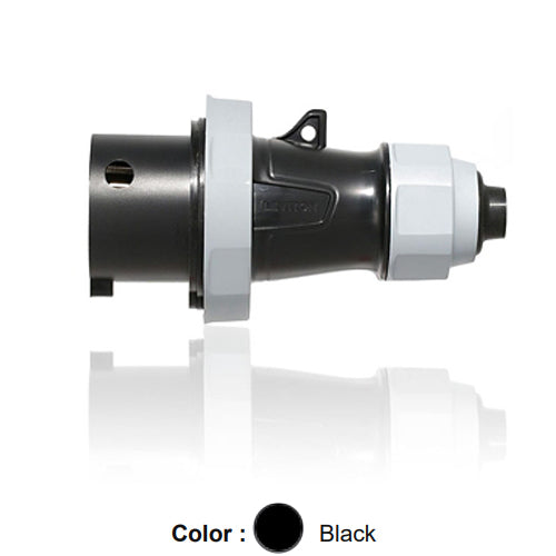 Leviton 530P5WLEVA, LEV Series North American-Rated IEC 60309-1 & 60309-2 Pin & Sleeve Plug with Alternate Screwless Clamp, Industrial Grade, 3-Phase, 30A 347/600V, 4-Pole, 5-Wire, IP66/IP67/IP68/IP69K, Watertight, Black
