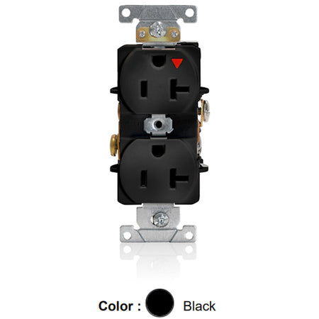 Leviton 5362-IGE, Standard Straight Blade Duplex Receptacle, Heavy-Duty Industrial Specification Grade, Smooth Face, Isolated Ground, 20A 125V, NEMA 5-20R, 2-Pole, 3-Wire, Back and Side Wire, Black