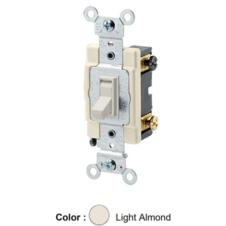 Leviton 54504-2T, Framed 4-Way AC Quiet Toggle Switch, Commercial Specification Grade, 15A 120/277V AC, Side Wire, Grounding, Light Almond