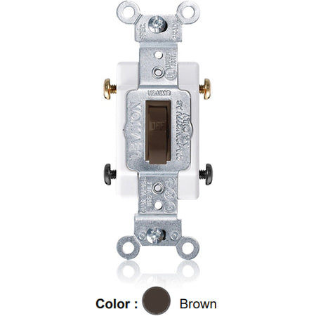 Leviton 54521-B, Framed Single-Pole Toggle Switch, Commercial Specification Grade, 20A 120/277V AC, Canadian, Side Wire, Brown