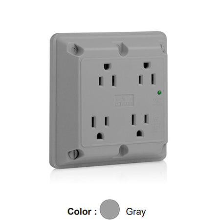 Leviton 5480-GY, 4-in-1 Surge Protective Quadruplex Receptacle, Heavy-Duty Industrial Specification Grade, Indicator Light, 15A 125V, NEMA 5-15R, 2-Pole, 3-Wire, Side Wire Only, Gray