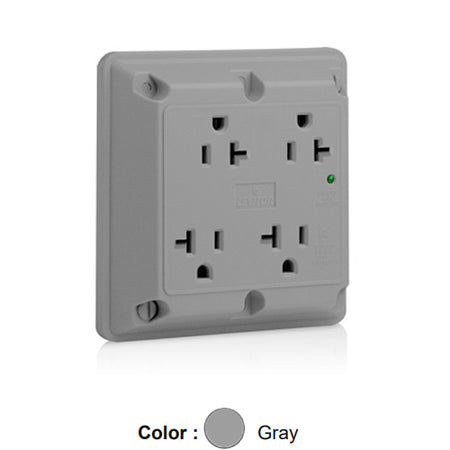 Leviton 5490-GY, 4-in-1 Surge Protective Quadruplex Receptacle, Heavy-Duty Industrial Specification Grade, Indicator Light, 20A 125V, NEMA 5-20R, 2-Pole, 3-Wire, Side Wire Only, Gray