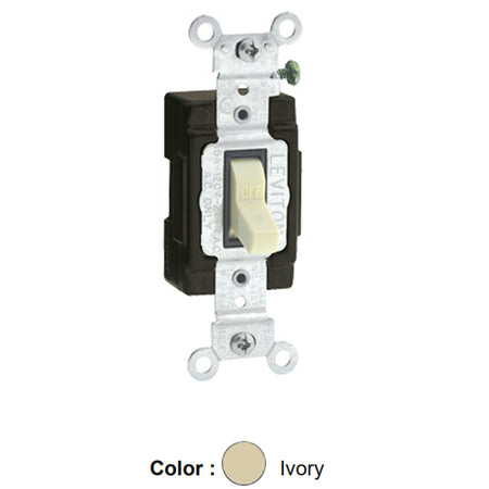 Leviton 5501-LHI, Illuminated OFF Single-Pole AC Quiet Toggle Switch, Lighted Handle, Does Not Require a Neutral Wire, Commercial Specification Grade, 15A 120V AC, Side Wired, Ivory