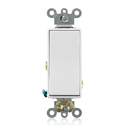 Leviton 56080-2W, Single Pole Single Throw Low Voltage Decora Plus Rocker Switch, Momentary Contact, Center Off, Commercial Specification Grade, 3 Amp, 24 Volt AC/DC, Self-Grounding, Back and Side Wired, White