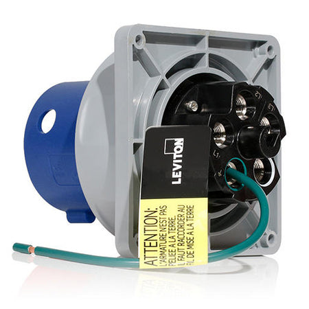 Leviton 560B9WLEV, LEV Series North American-Rated IEC 60309-1 & 60309-2 Pin & Sleeve Inlet, Industrial Grade, 3-Phase, 60/63A 120/208V, 4-Pole, 5-Wire, IP66/IP67/IP68/IP69K, Watertight, Blue