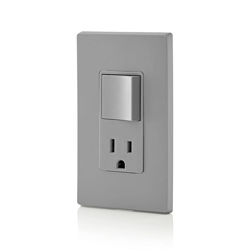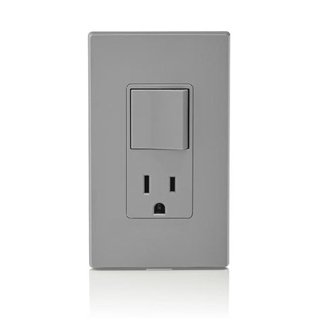 Leviton 5625-GY, Decora Single-Pole/5-15R AC Combination Switch, Residential Grade, 15 Amp, 120 Volt, Grounding, Side Wired, Gray