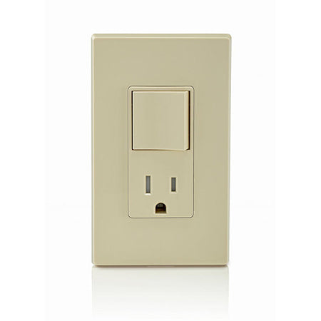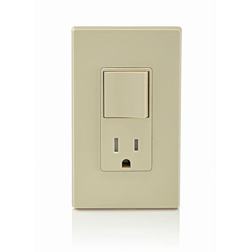 Leviton 5625-I, Decora Single-Pole/5-15R AC Combination Switch, Residential Grade, 15 Amp, 120 Volt, Grounding, Side Wired, Ivory