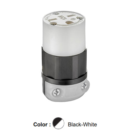 Leviton 5669-C, Straight Blade Connector, Industrial Grade, 15A 250V, NEMA 6-15R, 2-Pole, 3-Wire, Grounding, Black/White