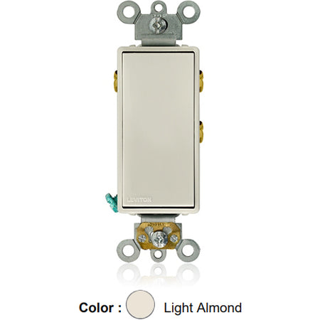 Leviton 5685-2T, Decora Plus Single Pole Double Throw Rocker Switch, Maintained Contact, Center Off, Commercial Grade, 15 Amp, 120/277 Volt, Self-Grounding, Back and Side Wired, Light Almond