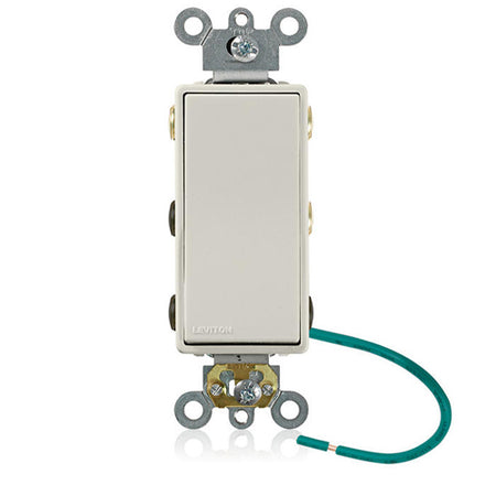 Leviton 5686-2T, Decora Plus Double Pole Double Throw Rocker Switch, Maintained Contact, Center Off, Commercial Grade, 15 Amp, 120/277 Volt, Green Grounding Lead, Self-Grounding, Back and Side Wired, Light Almond