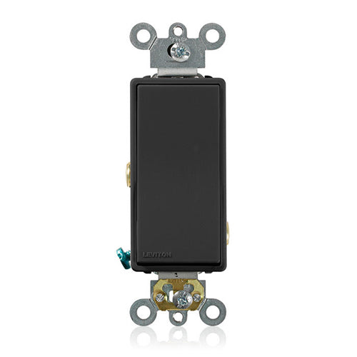 Leviton 5691-2E, Single Pole Decora Plus AC Quiet Rocker Switch, Commercial Specification Grade, 15 Amp, 120/277 Volt, Self-Grounding, Back and Side Wired, Black