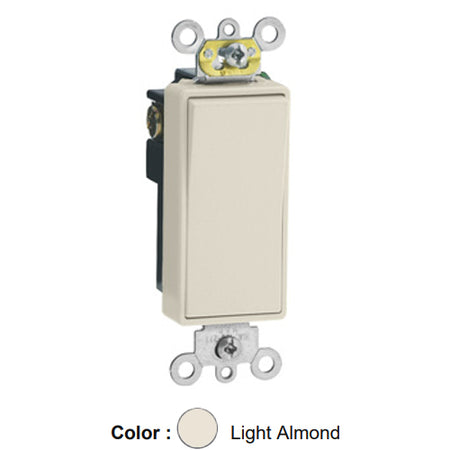 Leviton 5691-2T, Single Pole Decora Plus AC Quiet Rocker Switch, Commercial Specification Grade, 15 Amp, 120/277 Volt, Self-Grounding, Back and Side Wired, Light Almond