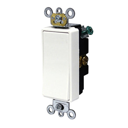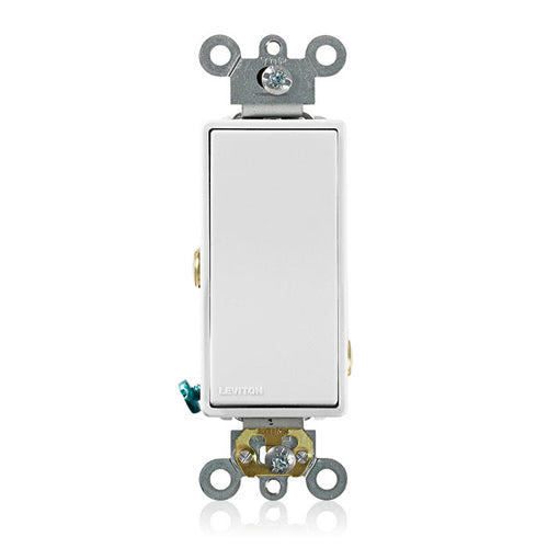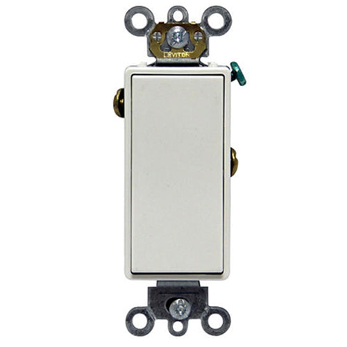 Leviton 5691-2W, Single Pole Decora Plus AC Quiet Rocker Switch, Commercial Specification Grade, 15 Amp, 120/277 Volt, Self-Grounding, Back and Side Wired, White