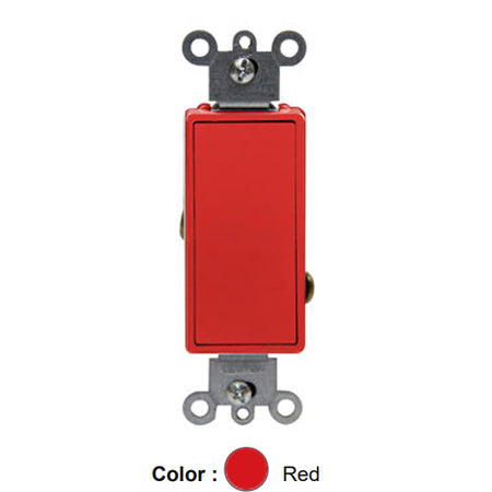 Leviton 5691-CR, Decora Plus Single Pole AC Quiet Rocker Switch, Commercial Specification Grade, 15 Amp, 347 Volt, Canadian, Back and Side Wired, Red