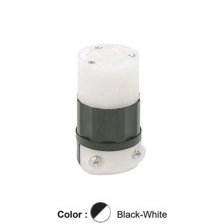 Leviton 5869-C, Straight Blade Connector, Industrial Grade, 15A 125V, NEMA 1-15R, 2-Pole, 2-Wire, Non-Grounding, Black/White