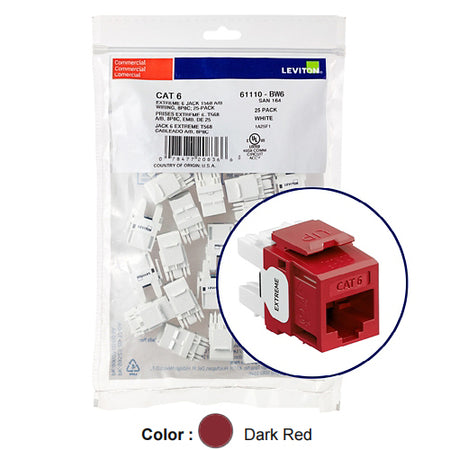 Leviton 61110-BR6, EXTREME Cat 6 UTP Quickport Jack, 25-Pack, Dark Red