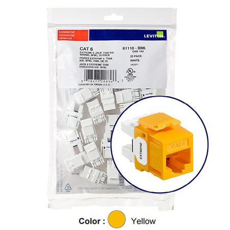 Leviton 61110-BY6, EXTREME Cat 6 UTP Quickport Jack, 25-Pack, Yellow