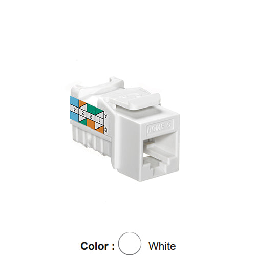 The HOME 6 Connector provides network connections for Cat 6 UTP structured cabling systems in residential applications. The connectors support high megabit applications and meets channel-rated performance according to TIA Cat 6 standards.
