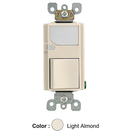 Leviton 6526-T, Decora Combination Single Pole Switch with LED Guide Light, 15 Amp, 120 Volt, Light Almond