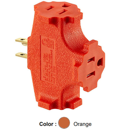 Leviton 694, Single-to-Triple Adapter, 3 Straight Plugs Accepted, 15 Amp, 125 Volt, NEMA 5-15R, 2-Pole, 3-Wire, Grounded, Orange