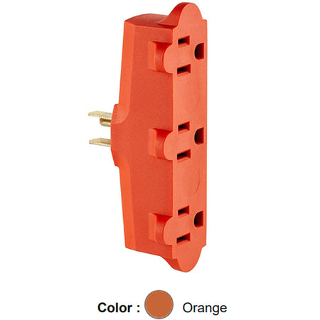 Leviton 699, Single-to-Triple Adapter, Vinyl, 3 Straight or Angle Plugs Accepted, 15 Amp, 125 Volt, NEMA 5-15P, 2-Pole, 3-Wire, Grounded, Orange