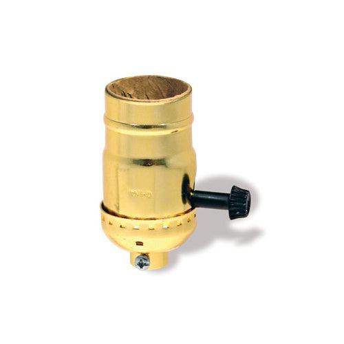 Leviton 7090-BR, Brass Shell Incandescent Lampholder, Removeable Turn Knob, Medium Base Complete, 2-Circuit, 1/8 IPS Tapped Bushing w/Set Screw, For 3-Way 2-Filament Lamps, Brass
