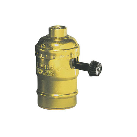 Leviton 7090-PG, Aluminum Shell Incandescent Lampholder, Removeable Turn Knob, Medium Base Complete, 2-Circuit, 1/8 IPS Tapped Bushing w/Set Screw, For 3-Way 2-Filament Lamps, Brass