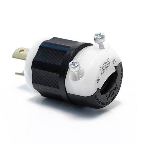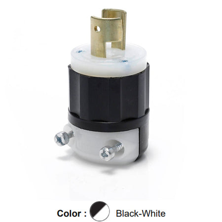 Leviton 7102-C, Locking Plug, Industrial Grade, 20 Amp, 250 Volt, NEMA L2-20P, 2-Pole, 2-Wire, Non-Grounding, Black/White