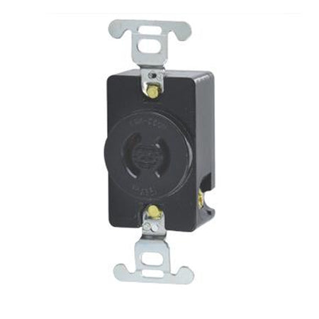 Leviton 7210-B, Locking Single Flush Receptacle, 20 Amp, 250 Volt, NEMA L2-20R, 2-Pole, 2-Wire, Non-Grounding, Black