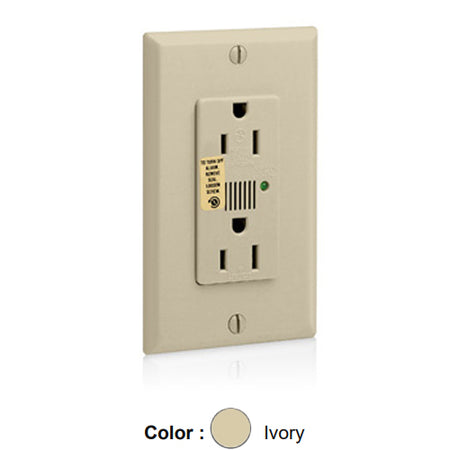 Leviton 7280-I, Decora Plus Surge Protective Duplex Receptacle, Commercial Specification Grade, Audible Alarm, Indicator Light, 15A 125V, NEMA 5-15R, 2-Pole, 3-Wire, Back and Side Wire, Ivory