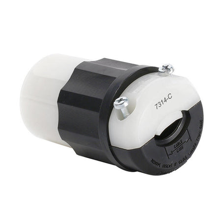 Leviton 7314-C, Locking Connector, Industrial Grade, 20A 125/250V, Non-NEMA, 3-Pole, 3-Wire, Non-Grounding, Black/White