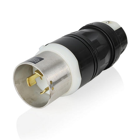 Leviton 7765C, Locking Plug, Industrial Grade, 50A 250VDC/600VAC, Non-NEMA, 3-Pole, 4-Wire, Grounding, Black/White