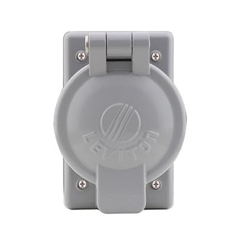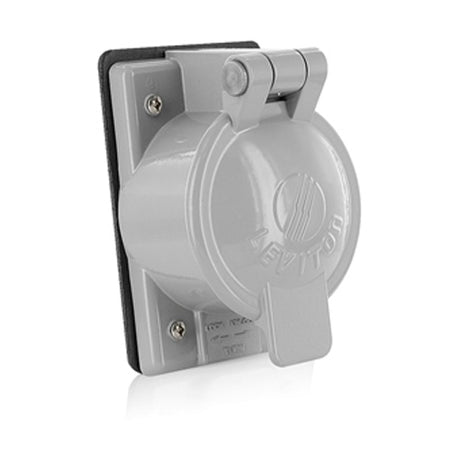 Leviton 7770, 1-Gang 2.15 Inch Diameter Cover Plate for 50A Single Receptacles, Cast Aluminum, Weather-Resistant, FS Box Mount, Vertical Self Closing Lid, Gray