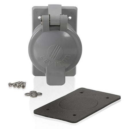 Leviton 7788-CRG, 1-Gang 2.15 Inch Diameter Device, Cover Plate for 50A Locking Receptacles, Weather-Resistant, Thermoplastic Glass-Filled, FS Box Mount, Vertical Self Closing Lid, Gray