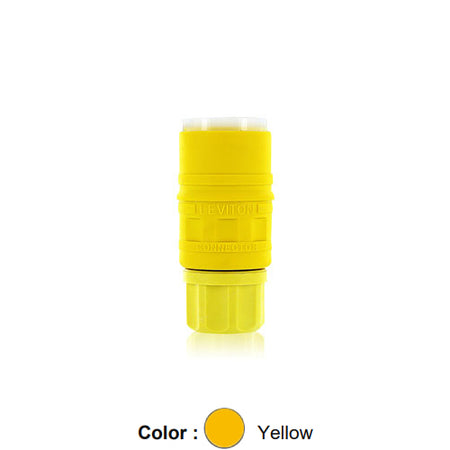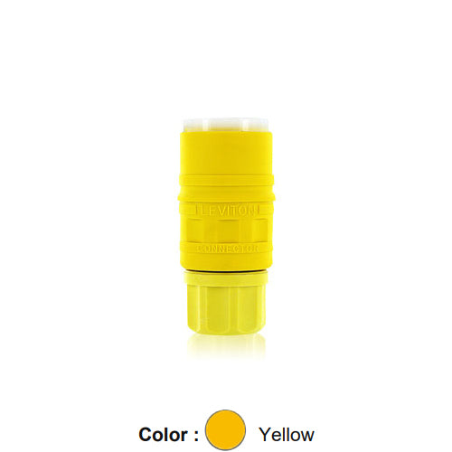 Leviton 79W47-C, Wetguard Watertight Straight Blade Connector for Single Inlet, Industrial Grade, 15A 125V, NEMA 5-15R, 2-Pole, 3-Wire, Grounding, Yellow